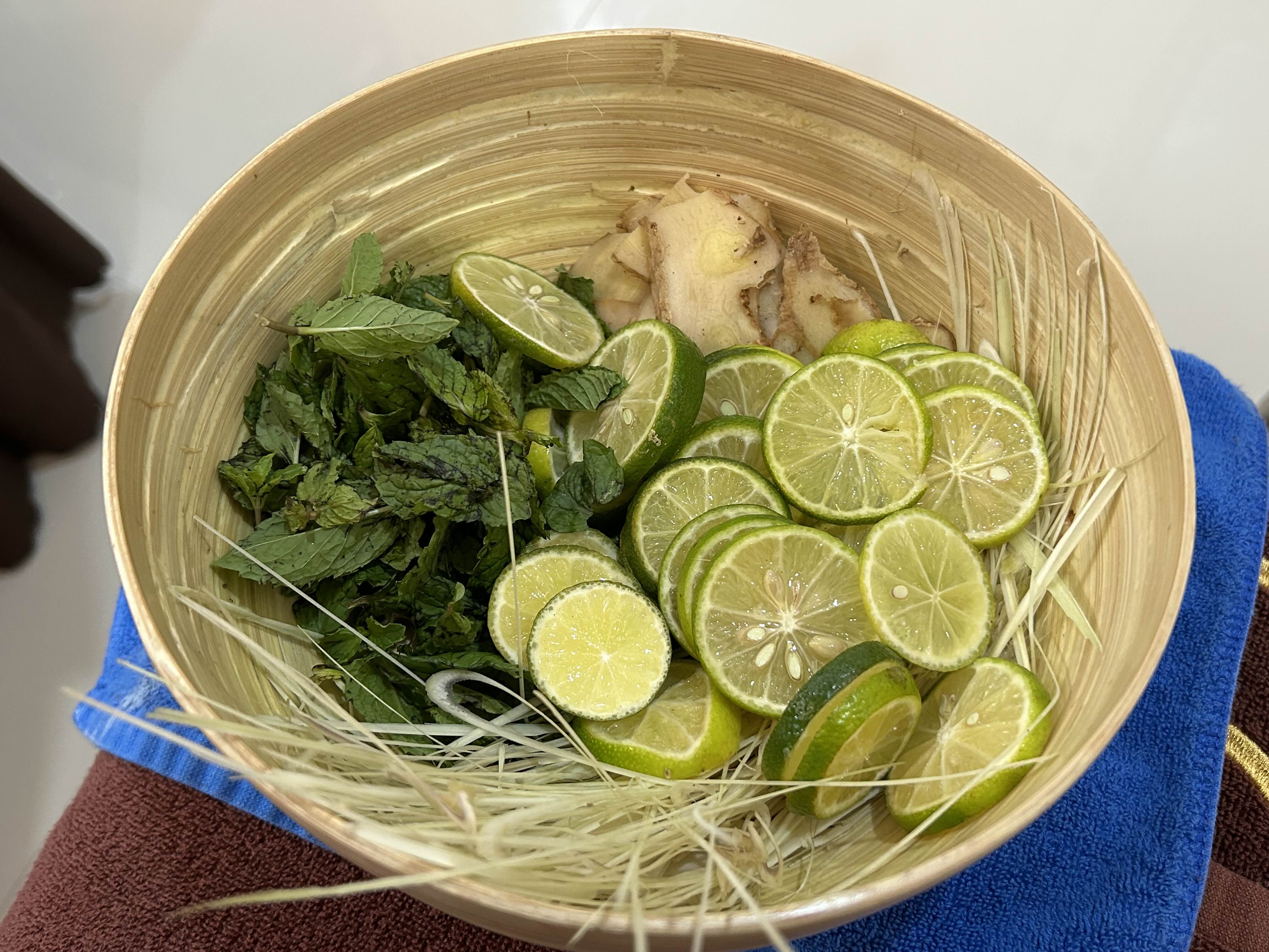 라임, 생강, 민트, 레몬그라스가 들어 있는