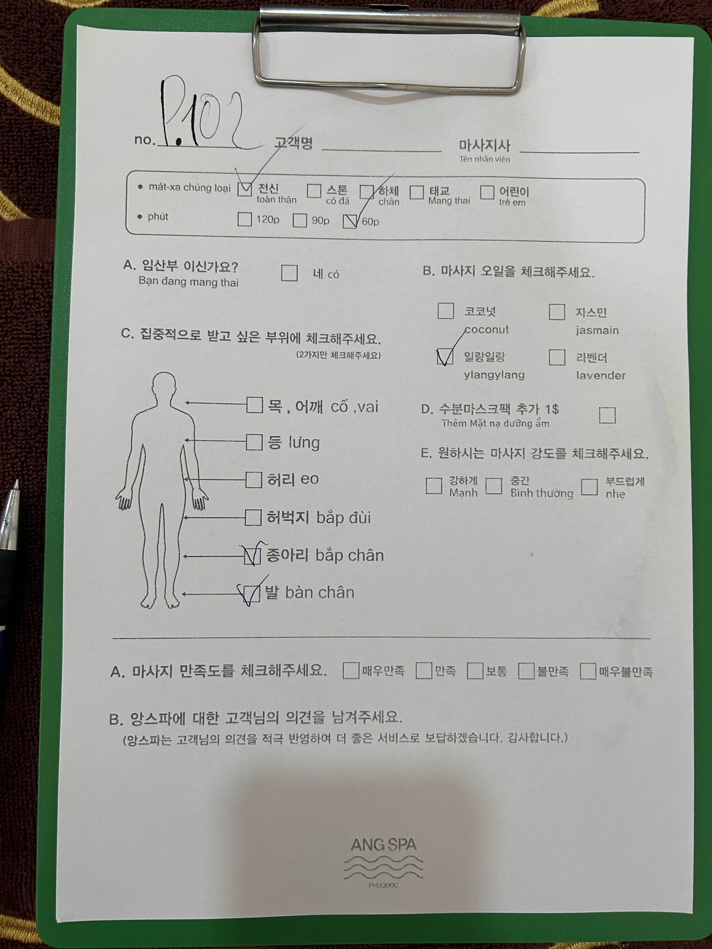 직원분이 전해주시는 설문지(?)에