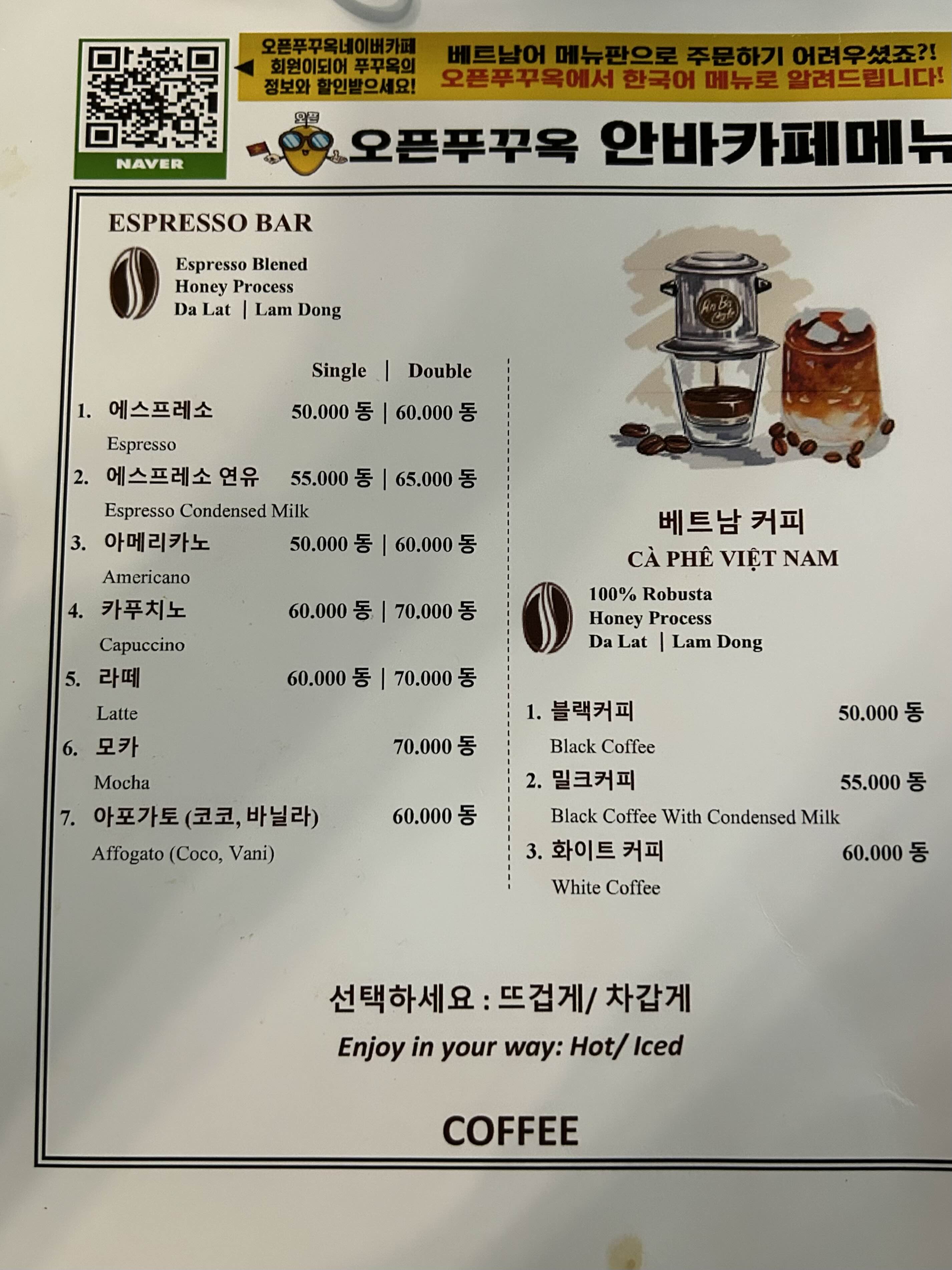 진짜 베트남 커피를 맛본 것 같은 느낌이고