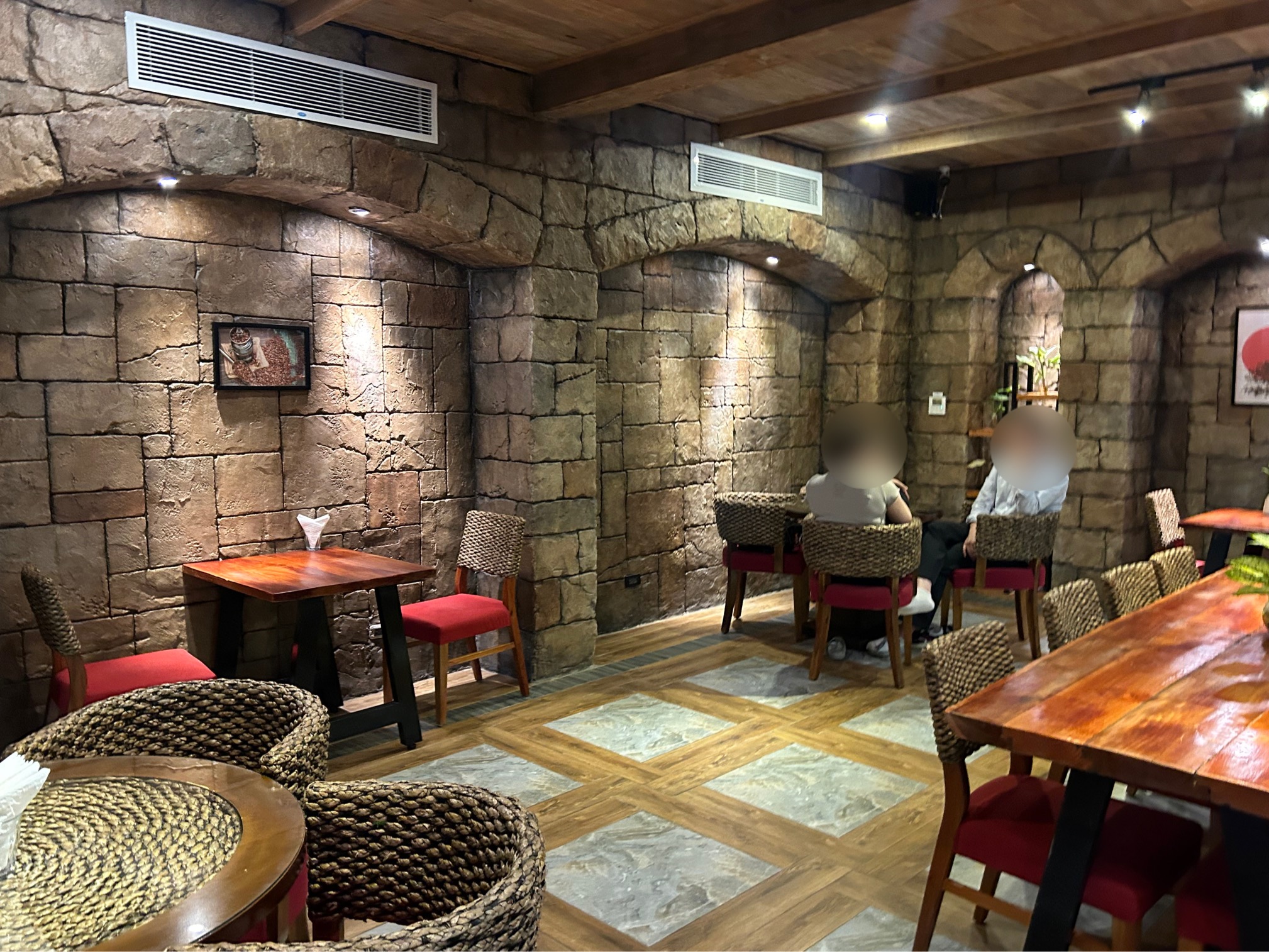 그래서 다시 나와서 실내좌석에 앉았습니다.