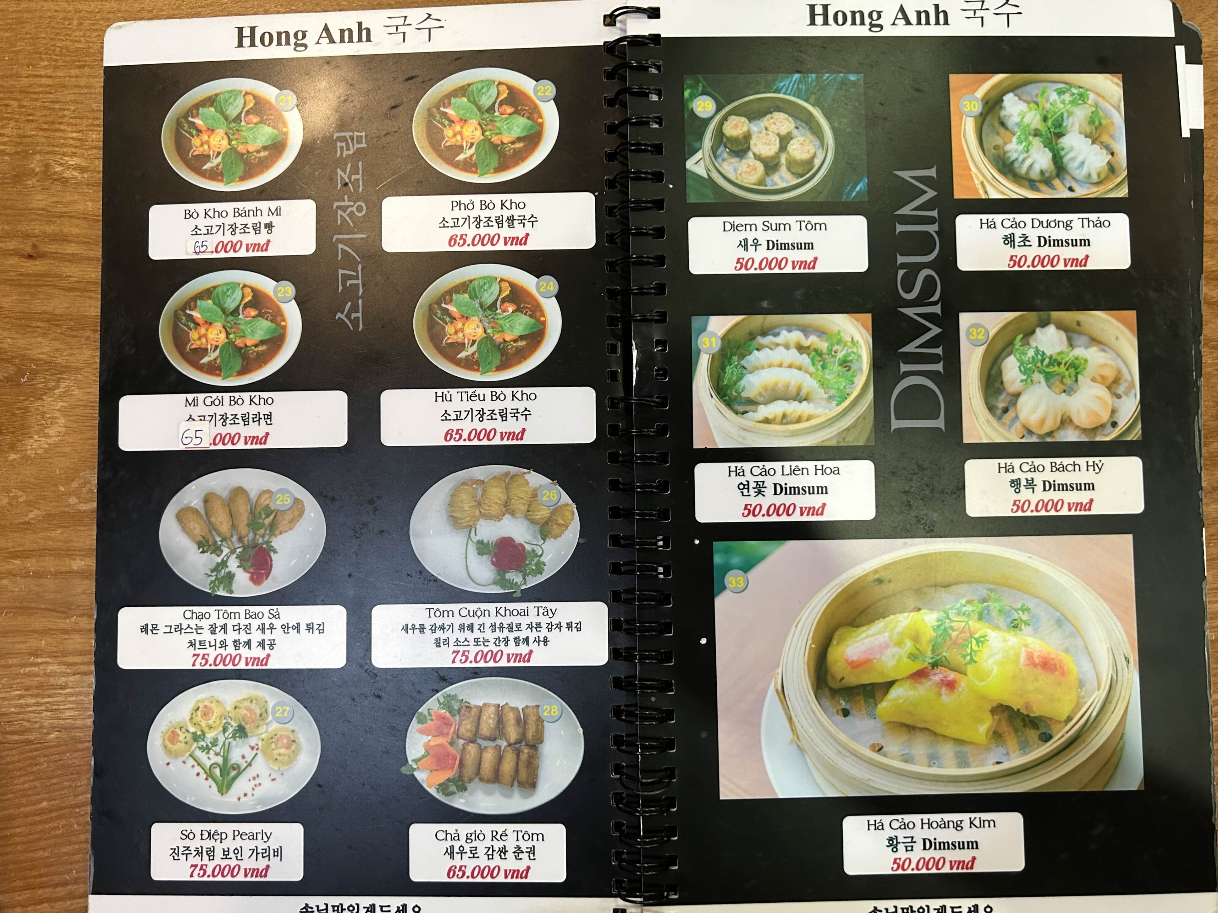 주로 쌀국수 종류가 많았고 이외에 딤섬,
