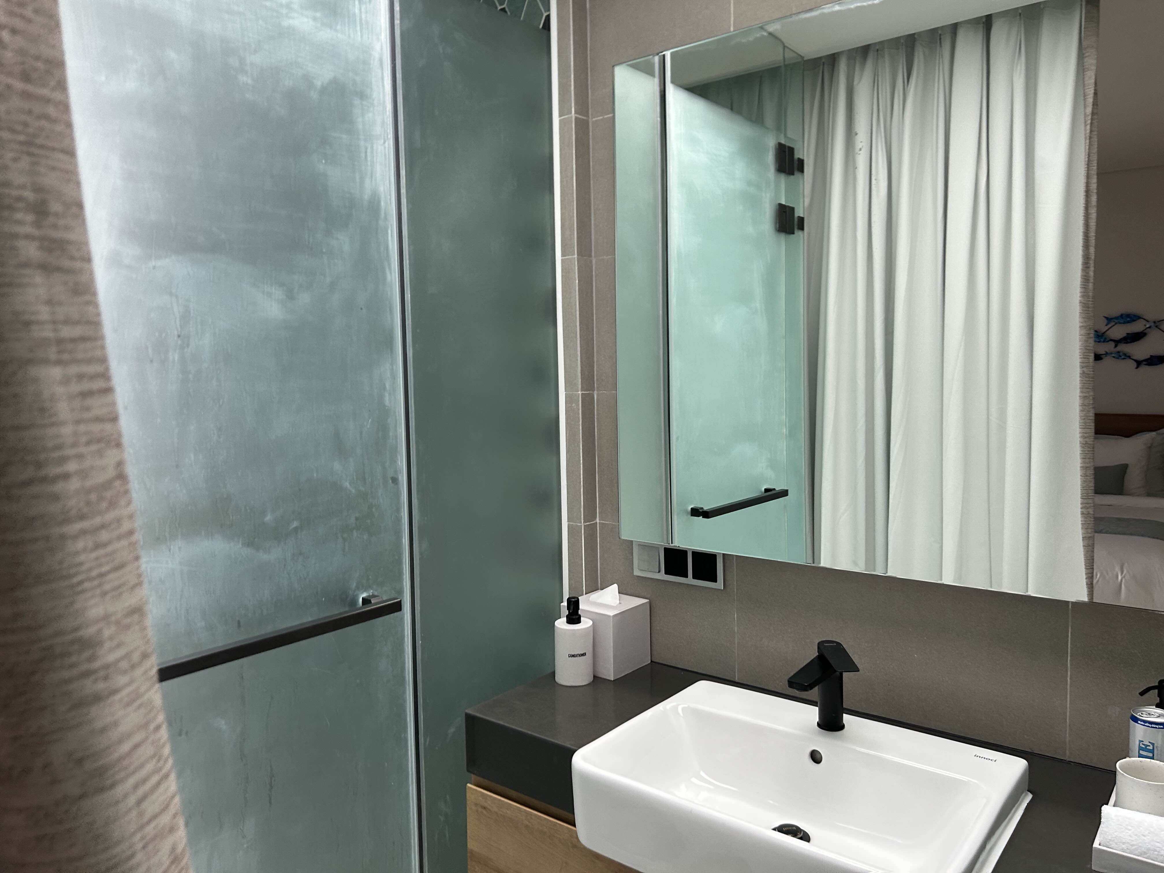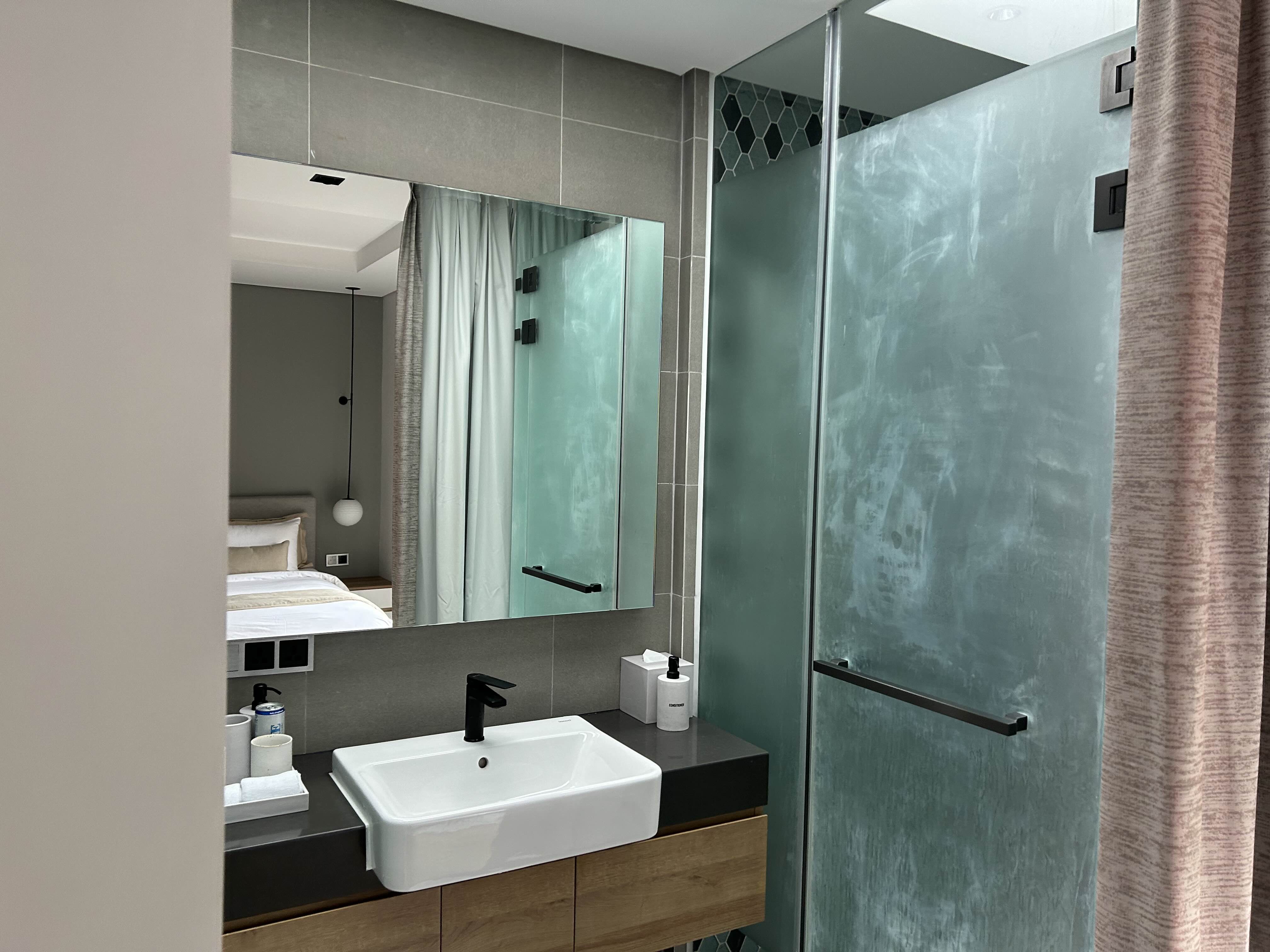 커튼을 열면 건식으로 된 세면대가 있고
