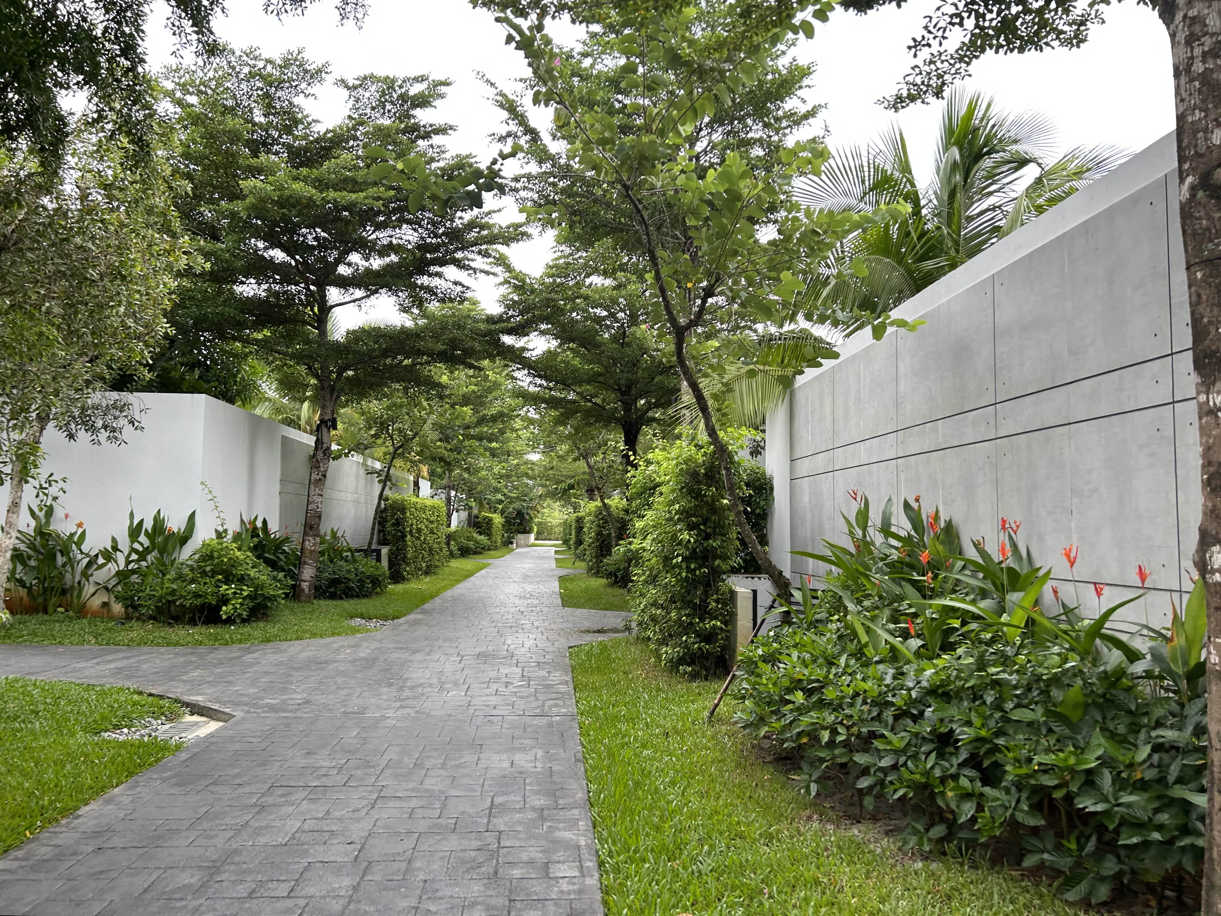 조경이 잘 되어있는 길을 따라가서