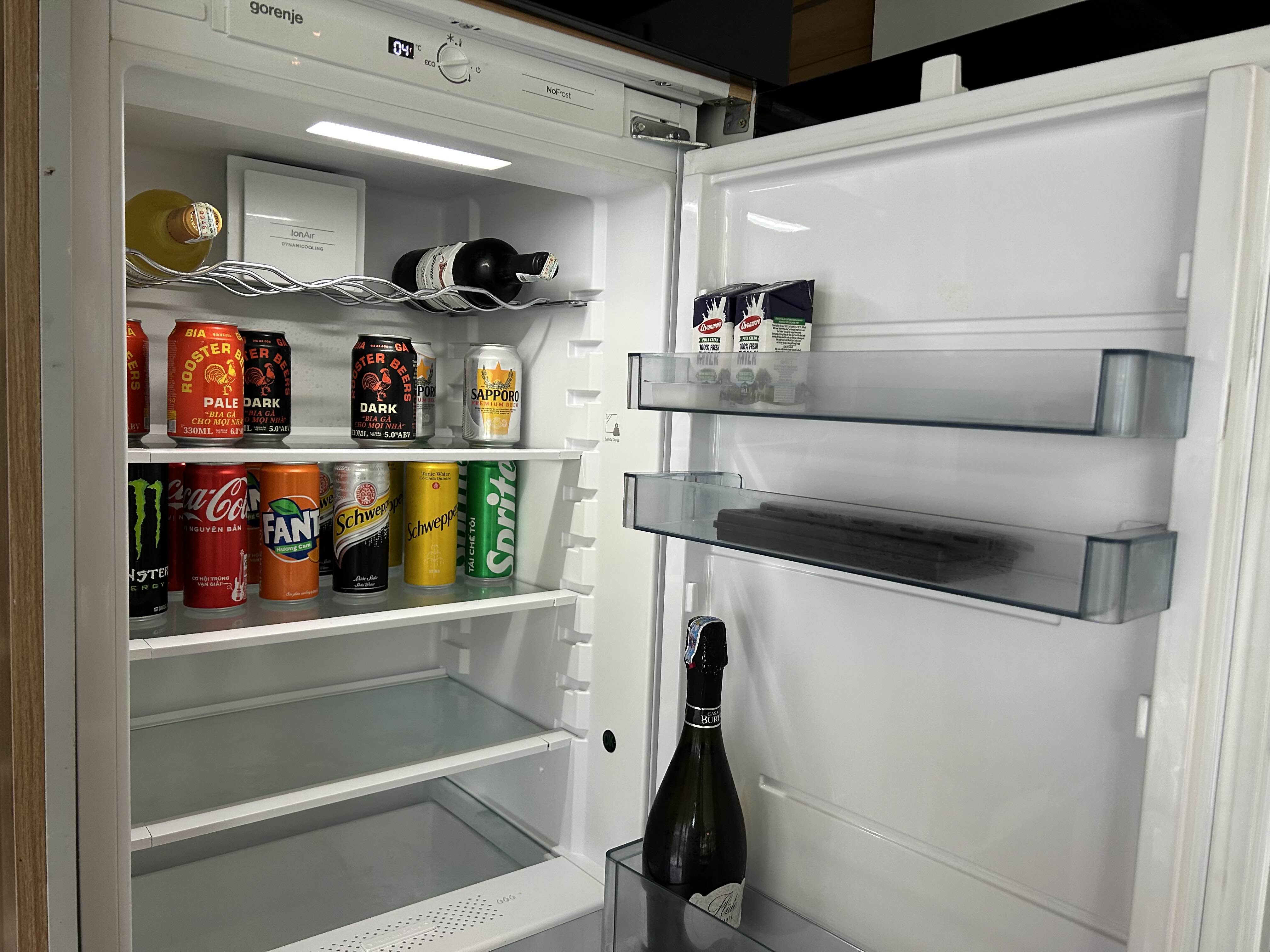 냉장고는 오른쪽 위의 우유만 무료 제공이고