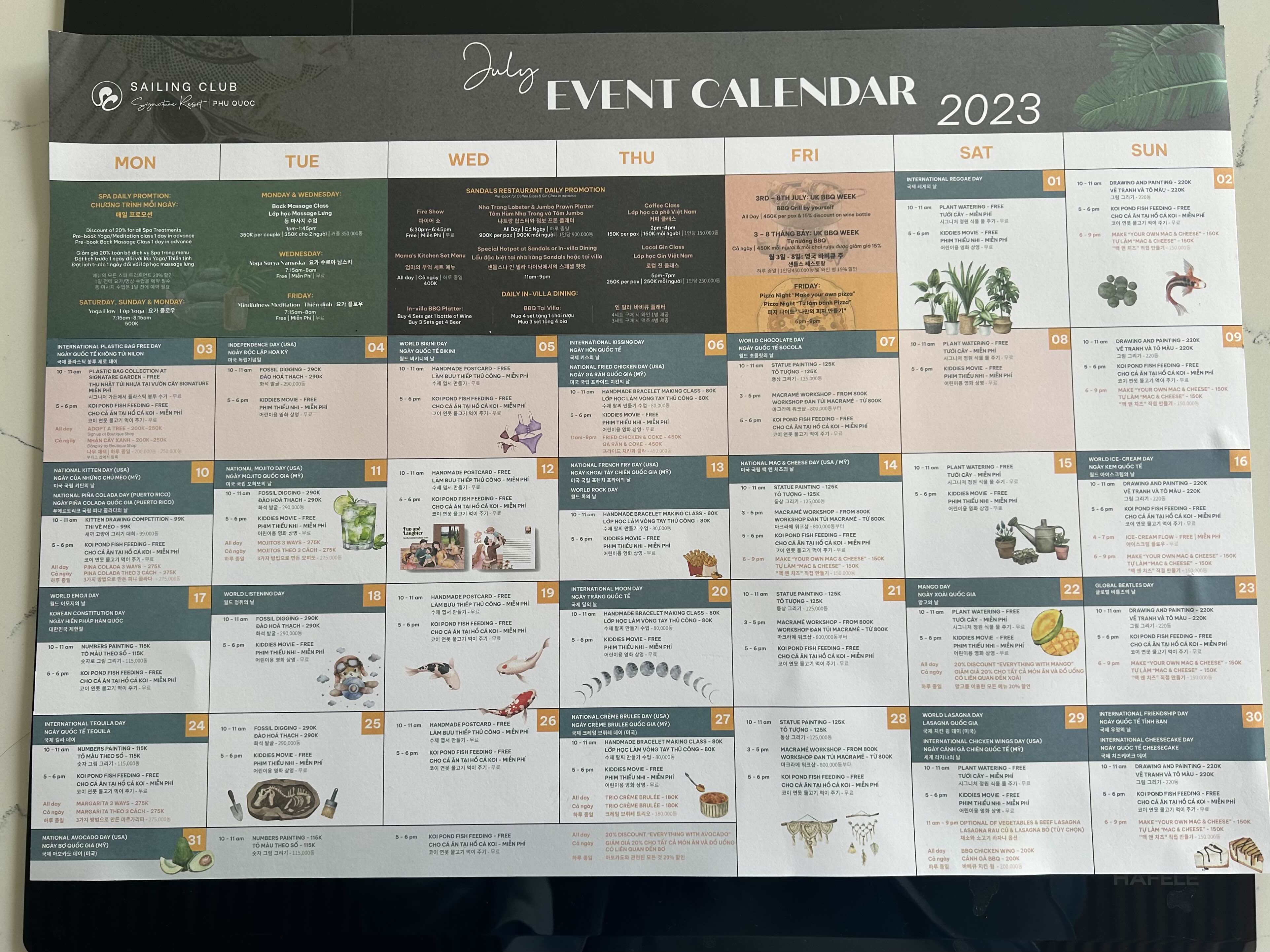 체크인할 때 직원분이 이벤트 캘린더를 주십니다.