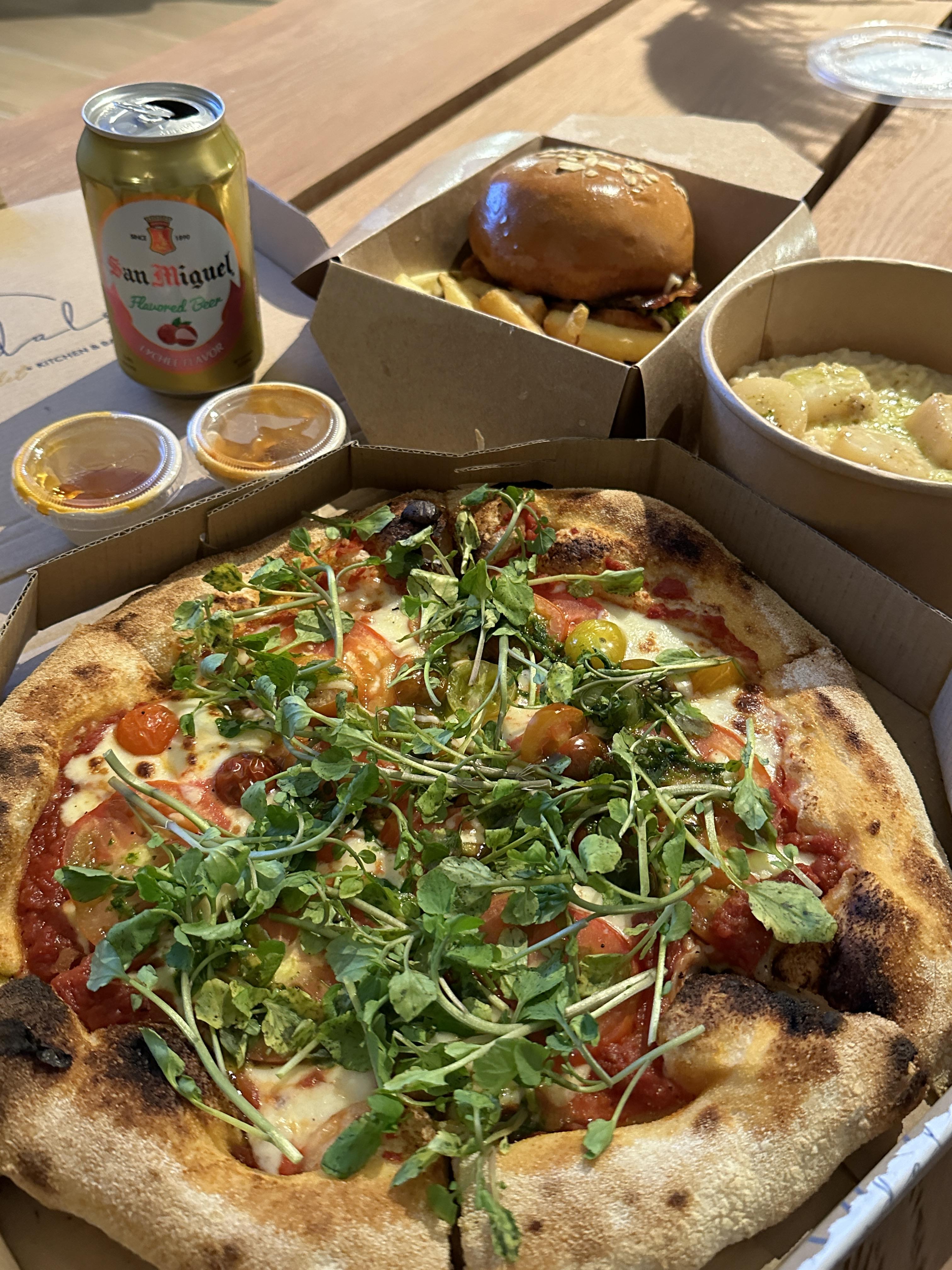 무난한 피자, 햄버거, 리조또를 주문했어요.