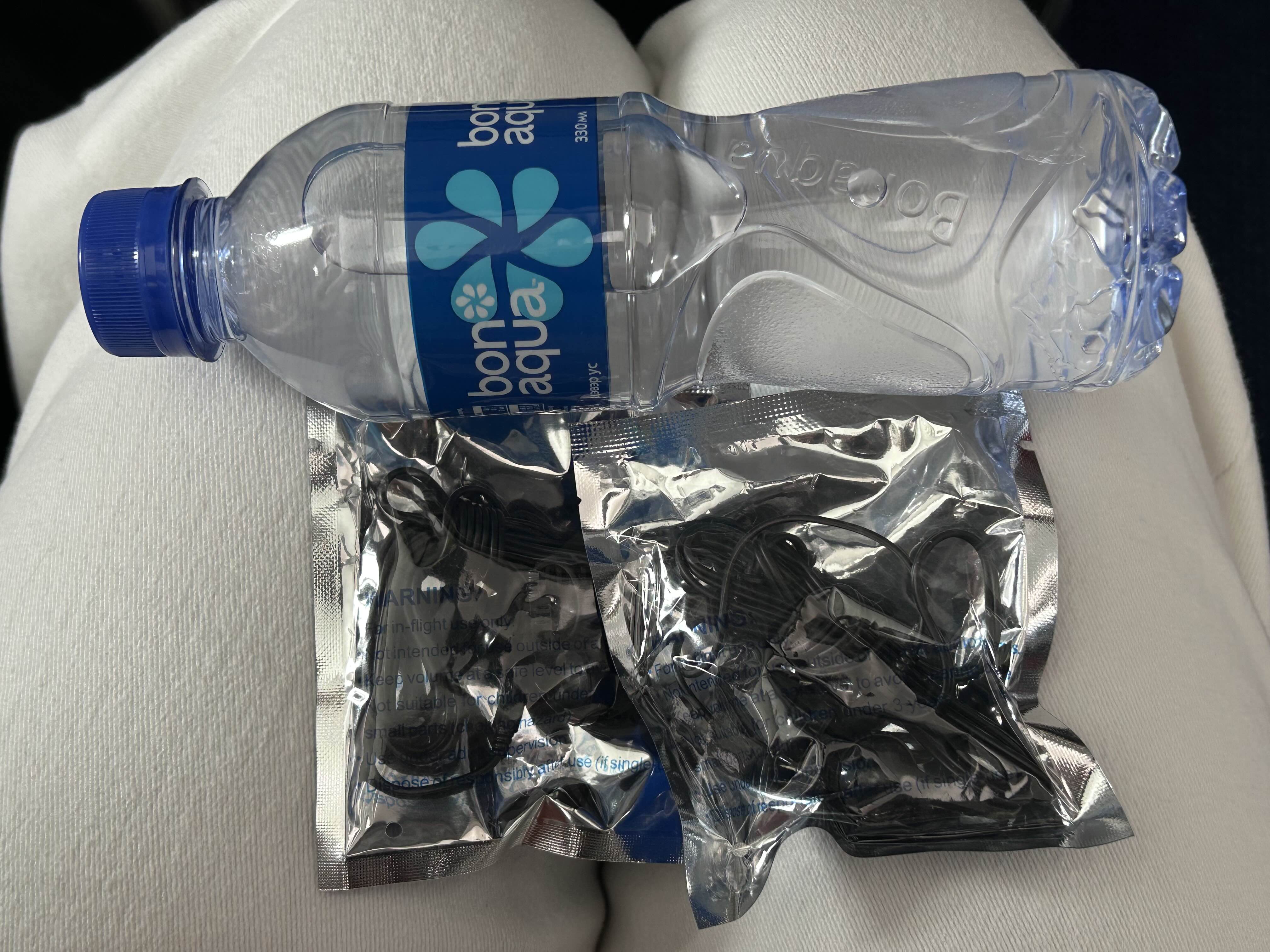 똑같이 이어폰 2개와 생수가 한병 꽂혀있어요.