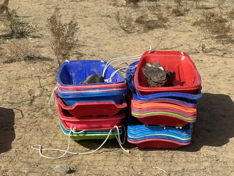 게르 입구에 모래썰매도 여러 개 놓여 있었어요.