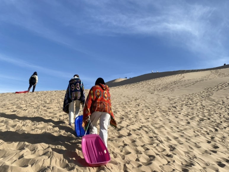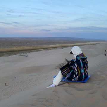 그냥 썰매 깔고 냅다 모래에 누워 있었습니다.