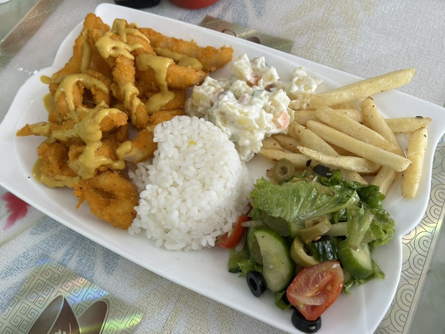이건 치킨텐더와 밥 감자샐러드, 감자튀김 등이 있었고