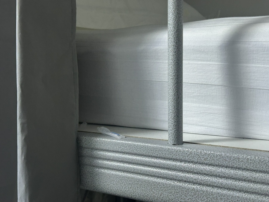 왼쪽 문 앞에 2층 침대 1개 이렇게 있었어요.