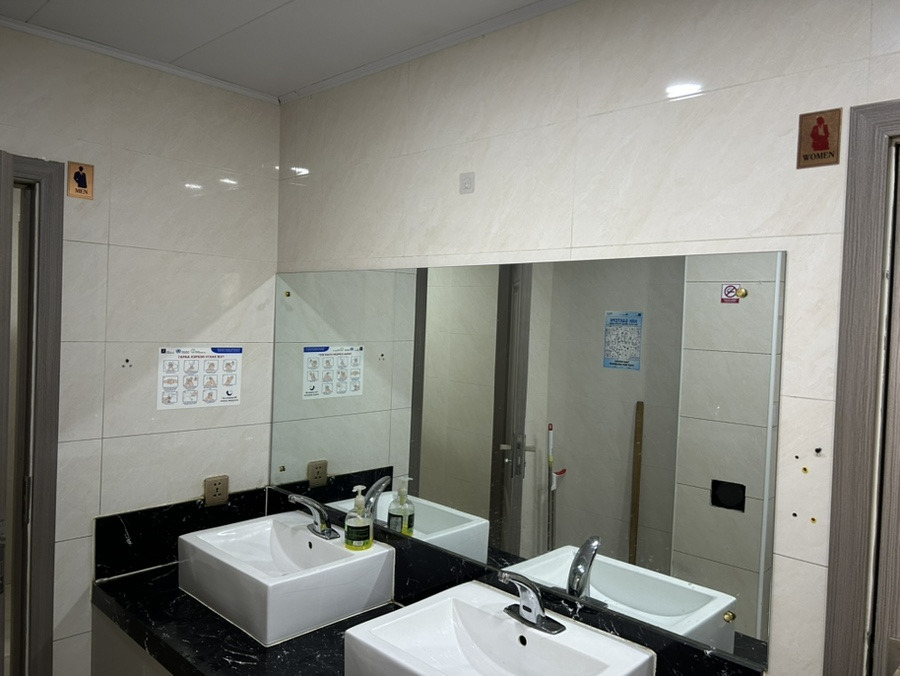 화장실 괜찮았고 손 세정제는 기대 마세요.