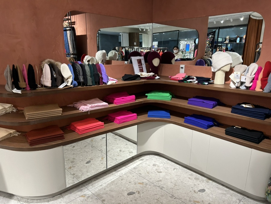 캐시미어 목도리 4+1 프로모션 진행 중이었습니다.
