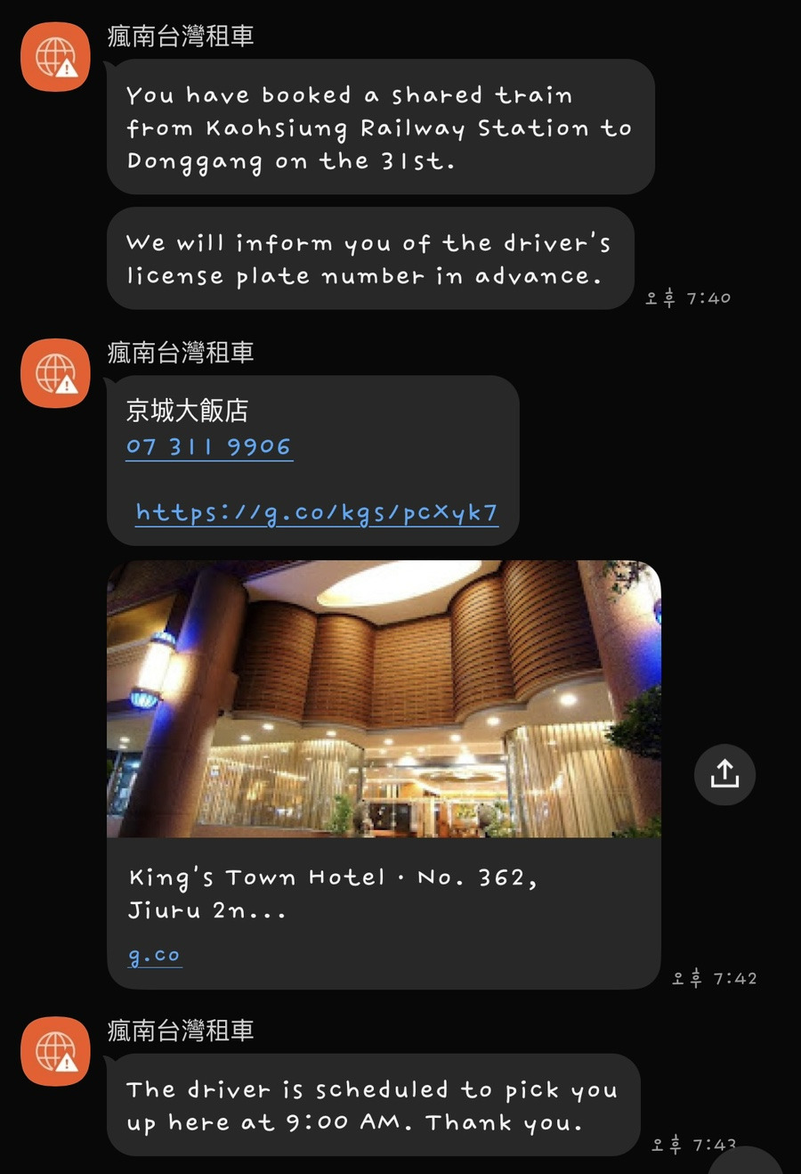 다시 가오슝 시내로 돌아가는 것까지 예약을 했었어요.