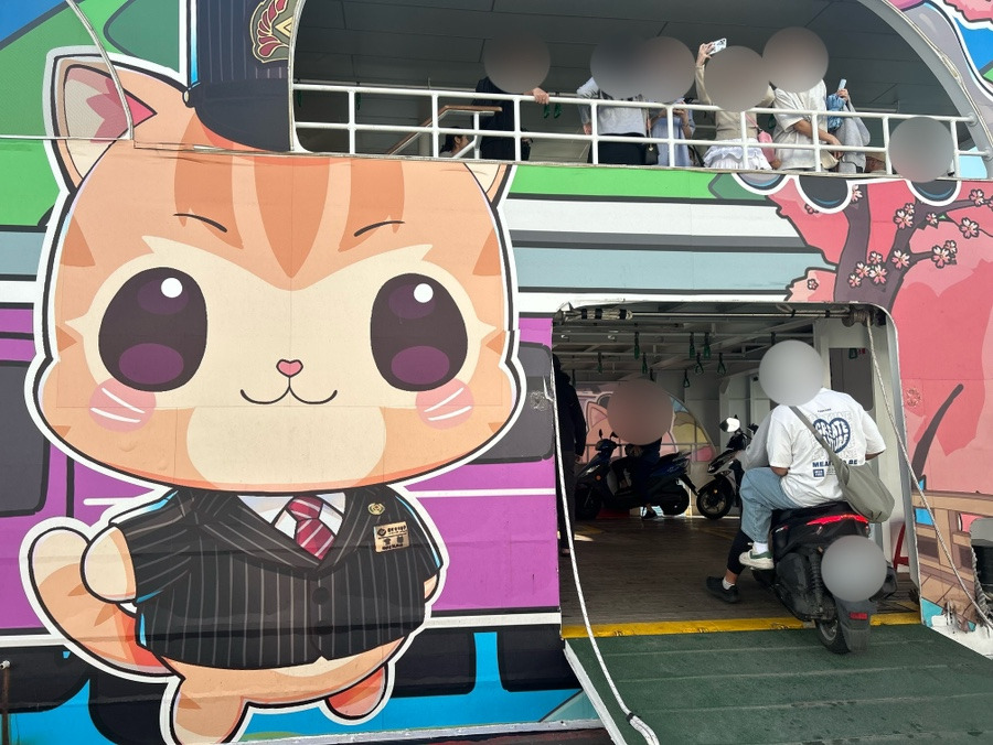 캐릭터가 있는 귀여운 페리가 기다리고 있었어요.