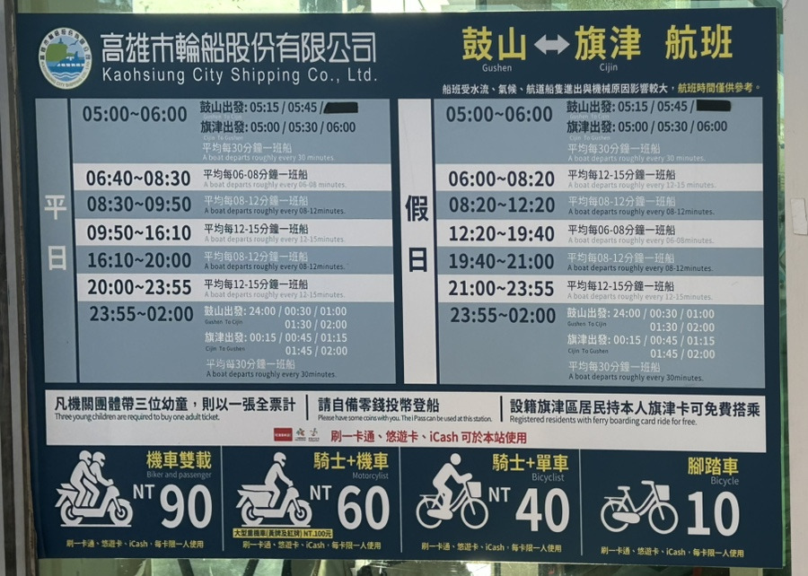 💵 페리 비용 : 페리 1인 왕복 60 대만달러